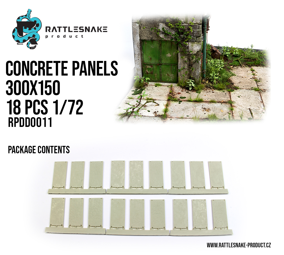 Detailní resinové panely imitující betonové desky v měřítku vhodném pro diorámy, modelové základny nebo terénní scény.