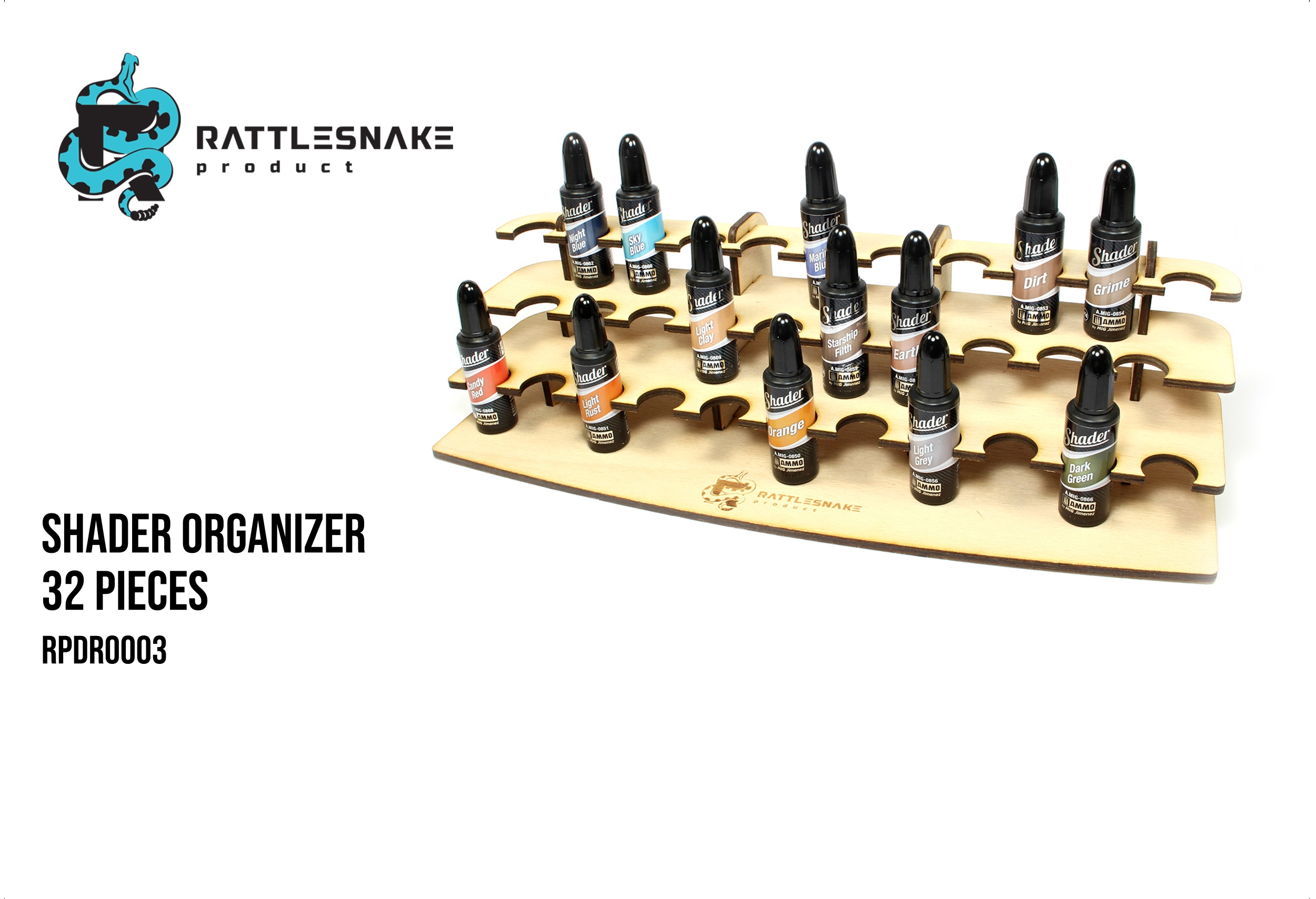 Dřevěný organizér na stíny Shader od Ammo by Mig Jimenez je praktický a elegantní pomocník pro malíře, který nabízí dostatek prostoru pro uspořádání barev. Vyrobený z kvalitního dřeva, poskytuje pevnost a dlouhou životnost, zatímco jeho design přidává do pracovního prostoru nádech estetiky. Tento organizér je ideální pro modeláře, kteří hledají přehlednost a efektivitu při práci.